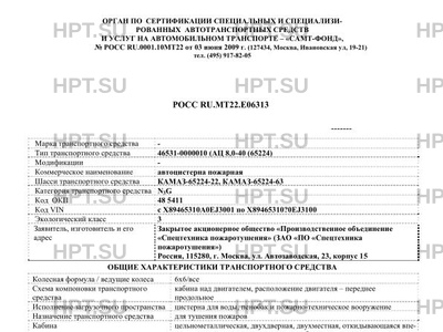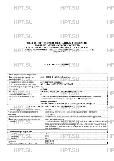 | Тип ТС | 46531-0000010 (АЦ 8,0-40 (65224) на шасси КАМАЗ-65224 |