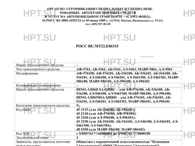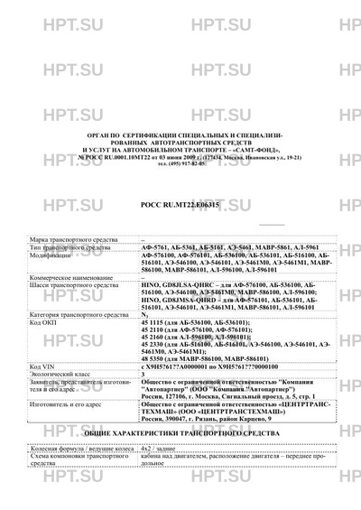 | Базовое ТС / Шасси | HINO, GD8JLSA-QHRС - для АФ-576100, АБ-536100, АБ- 516100, АЭ-546100, АЭ-5461М0… |