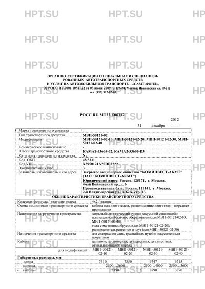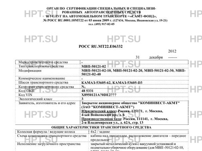 | Тип ТС | МВП-50121-02 (МВП-50121-02-10, МВП-50121-02-20, МВП-50121-02-30, МВП-50121-02-40) |