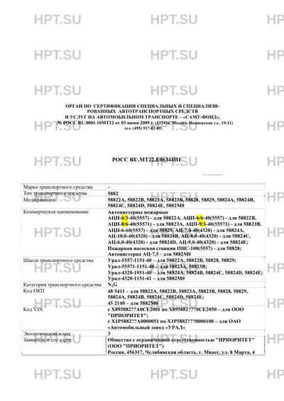 | Код VIN | Х895882???0СЕ2... – для ООО "ПРИОРИТЕТ"; Х1Р5882??... – для ОАО «Автомобильный завод «УРАЛ» |