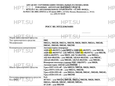 | Тип ТС | А58822А, 58822В, 58823А, 58823В, 58828, 58829, 58824А, 58824В, 58824С, 58824D, 58824E, 5882M0 на шасси Урал-5557-1151-40 – для 58822А, 58822В, 58828, 58829; Урал-55571-1151-40 – для 58823А, 58823В; Урал-4320-1951-40 – для 58824А, 58824В, 58824С, 58824D, 58824E; Урал-4320-1151-41 – для 5882М0 |