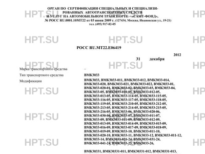 | Тип ТС | ВМК3033?? на шасси ПАЗ-32053, ПАЗ-32053-07, ПАЗ-3206-110, ПАЗ-4234 |