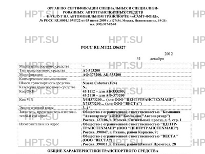 | Код VIN | Х9Н3?3200… (для ООО ''ЦЕНТРТРАНСТЕХМАШ''); Х713?3200… (для ООО ''ВЕСТА'') |