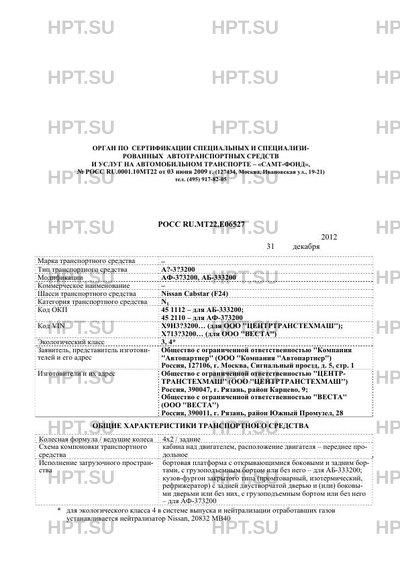 | Коммерческое наименование | АБ-333200, АФ-373200 на шасси Nissan Cabstar (F24) |