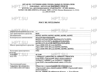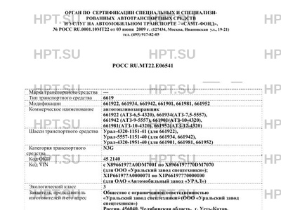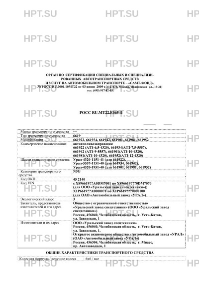| Базовое ТС / Шасси | Урал-4320-1151-41 (для 661922), Урал-5557-1151-40 (для 661934, 661942), Урал-43… |