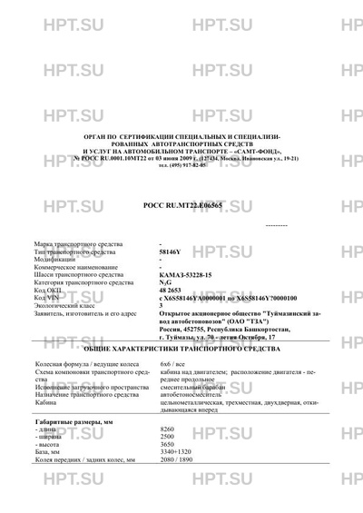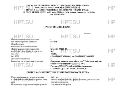 Коммерческое наименование 58146Y на шасси КАМАЗ-53228-15