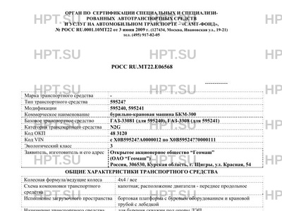 | Коммерческое наименование | 595240, 595241 на шасси ГАЗ-3308, ГАЗ-33081 |
