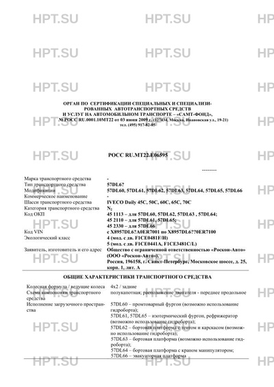 | Коммерческое наименование | 57DL60, 57DL61, 57DL62, 57DL63, 57DL64, 57DL65, 57DL66 на шасси IVECO Daily 45C… |