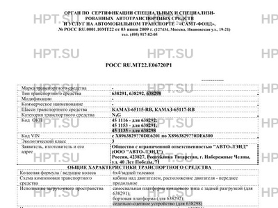 | Коммерческое наименование | 638291, 638292, 638298 на шасси КАМАЗ-65115-RB, КАМАЗ-65117-RB |