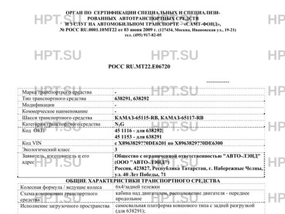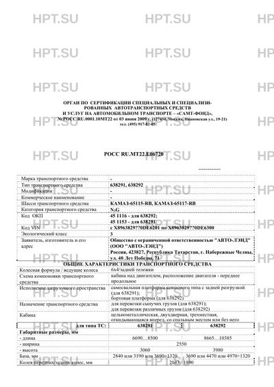 | Коммерческое наименование | 638291, 638292 на шасси КАМАЗ-65115-RB, КАМАЗ-65117-RB |