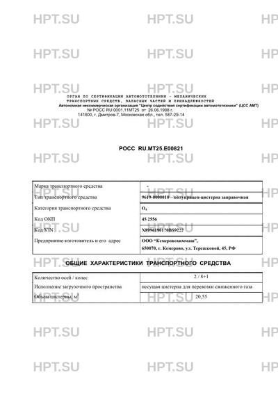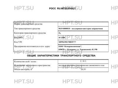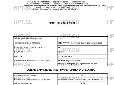 | Тип ТС | 9619-0000010 - полуприцеп-цистерна заправочная |