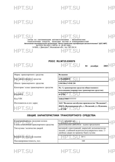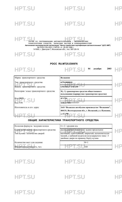 | Предприятие-изготовитель | Волжское автобусное производство Муниципального Унитарного предприятия Автоколонна-1732, 404131, Волгоградская обл., г.Волжский, ул. Пушкина, 67, РФ |