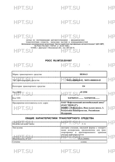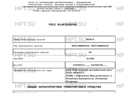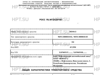 | Предприятие-изготовитель | ОАО "Нефтекамский автомобильный завод" (ОАО "НЕФАЗ"), 452680, г. Нефтекамск, Янаульское шоссе, 3, Республика Башкортостан, Российская Федерация |