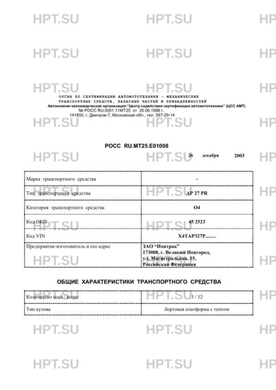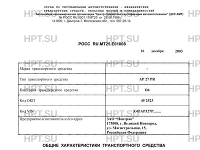 | Тип ТС | АР 27 РR |