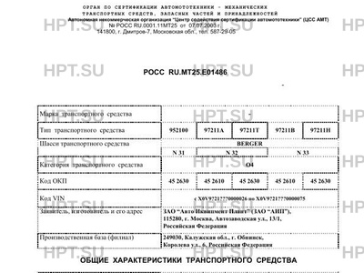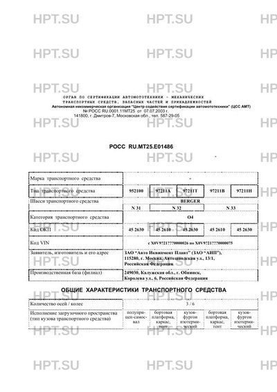 | Базовое ТС / Шасси | BERGER N 31 N 32 N 33 |