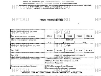 | Тип ТС | 952100 97211А 97211Т 97211В 97211Н |