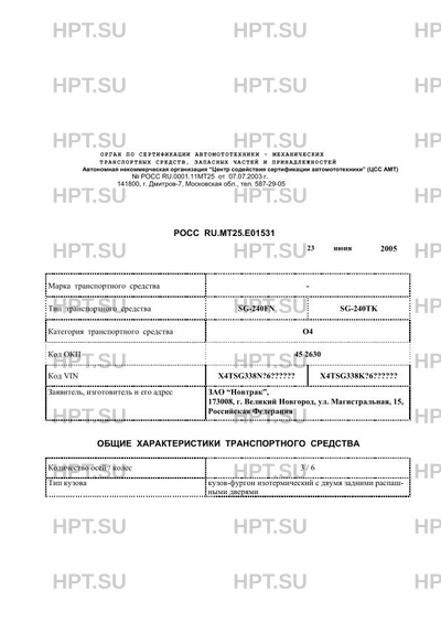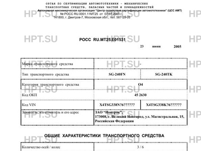 | Предприятие-изготовитель | ЗАО "Новтрак", 173008,г. Великий Новгород, ул. Магистральная, 15 |