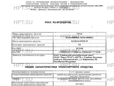 | Тип ТС | 56216-0000010,56216-00000011 |
