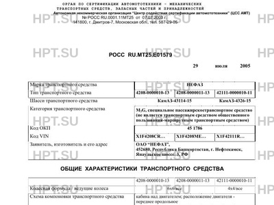 | Тип ТС | 4208-0000010-13 4208-0000011-13 42111-0000010-11 |
