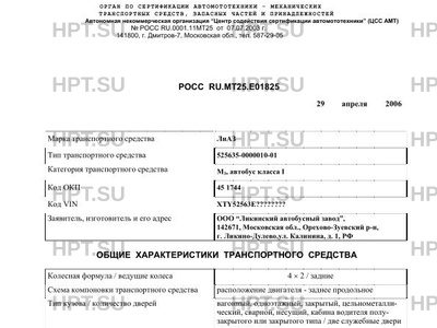 | Заявитель | ООО "Ликинский автобусный завод", 142671, Московская обл., Орехово-Зуевский р-н, г. Ликино-Дулево,ул. Калинина, д. 1, РФ |