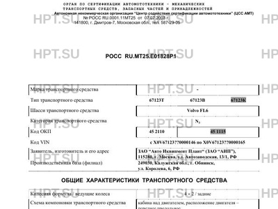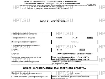 | Код VIN | с X0V67123??0000146 по X0V67123??0000165 |
