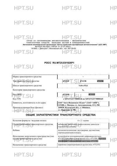 | Исполнение загрузочного пространства | кузов-фургон изотермический, рефрижератор (мод. 67123Т) или общего назначения (мод. 67123В), бортовая платформа с тентом или без него (мод. 67123К) |
