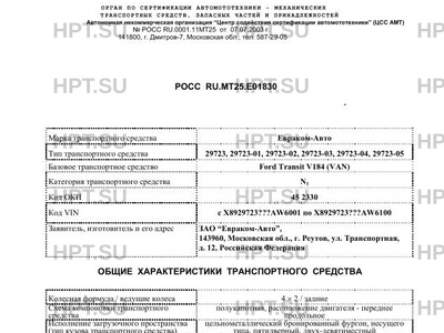 | Базовое ТС / Шасси | Ford Transit V184 (VAN) |