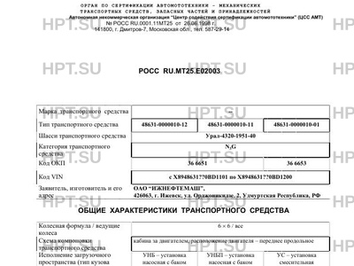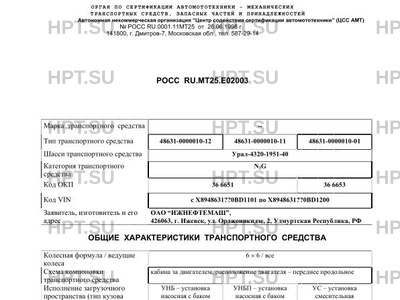 | Марка ТС | Cпецавтомобиль Ижнефтемаш |