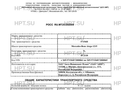 | Базовое ТС / Шасси | Mercedes-Benz Atego 1215 |