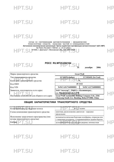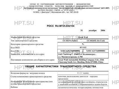 | Поставщик сборочных комплектов | и его адрес Great Wall Automobile Holding Company Ltd., 2266 Chaoyang South Ave. Baoding, Hebei 071000, China |