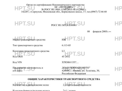 | Предприятие-изготовитель | ДОАО "ИЖМАШ-МОТО" 426006, г. Ижевск, ул. Телегина, 30, Российская Федерация |
