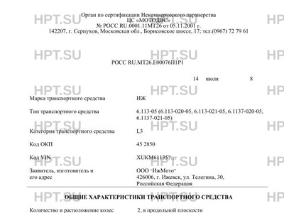 | Предприятие-изготовитель | ООО "ИжМото" 426006, г. Ижевск, ул. Телегина, 30, Российская Федерация |