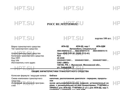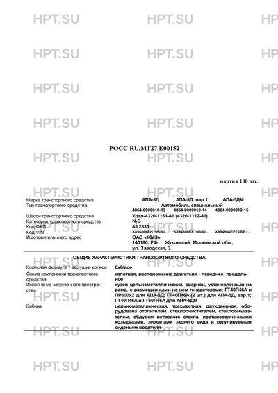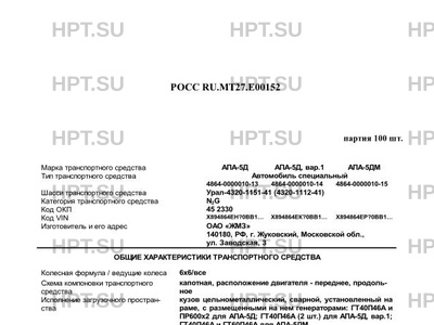 | Тип ТС | 4864-0000010-13 (АПА-5Д), 4864-0000010-14 (АПА-5Д, вар.1), 4864-0000010-15 (АПА-5ДМ) на шасси Урал-4320-1151-41 (4320-1112-41) |