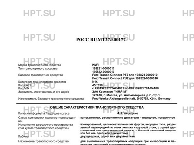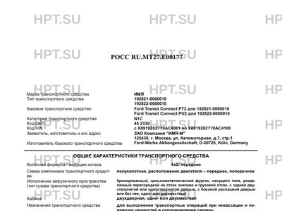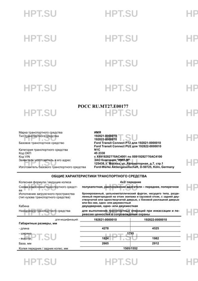 | Базовое ТС / Шасси | Ford Transit Connect PT2 для 192821-0000010 Ford Transit Connect PU2 для 192822… |
