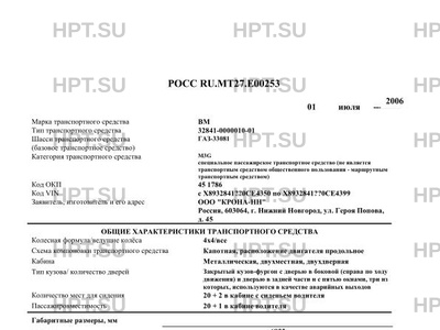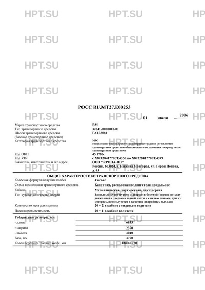 | Коммерческое наименование | 332841-0000010-01 на базе шасси ГАЗ-33081 |