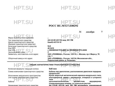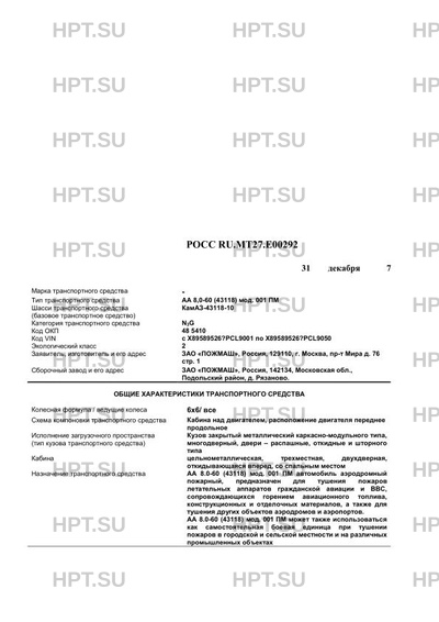 Тип ТС АА 8,0-60 (43118) мод. 001 ПМ на шасси КамАЗ-43118-10