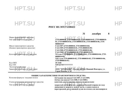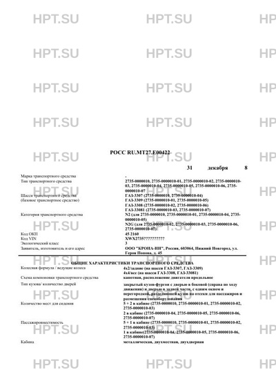 Тип ТС 2735-0000010, 2735-0000010-01, 2735-0000010-02, 2735-0000010- 03, 2735-0000010-…