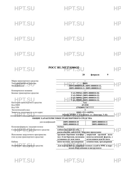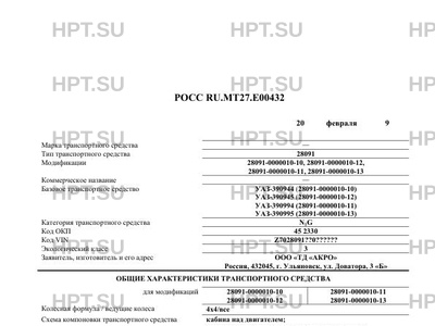 | Тип ТС | 28091-0000010-10 на базе автомобиля УАЗ-390944, 28091-0000010-12 на базе автомобиля УАЗ-390945, 28091-0000010-11 на базе автомобиля УАЗ-390994, 28091-0000010-13 на базе автомобиля УАЗ-390995 |
