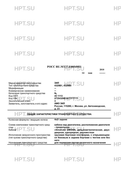 | Предприятие-изготовитель | АМО ЗИЛ, Россия, 115280, г. Москва, ул. Автозаводская, д. 23 |