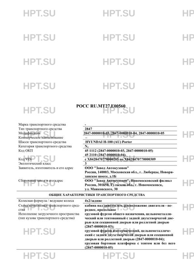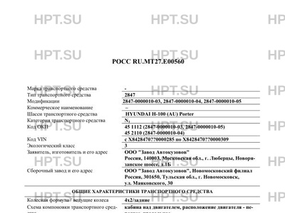 | Коммерческое наименование | 2847 (2847-0000010-03, 2847-0000010-04, 2847-0000010-05 на базе шасси HYUNDAI H… |