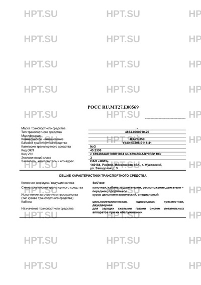 | Базовое ТС / Шасси | Урал-43206-0111-41 |