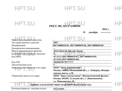 Тип ТС 2847 (2847-0000010-03, 2847-0000010-04, 2847-0000010-05) на базе шасси HYUNDAI …