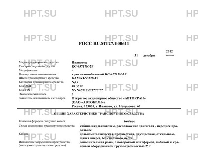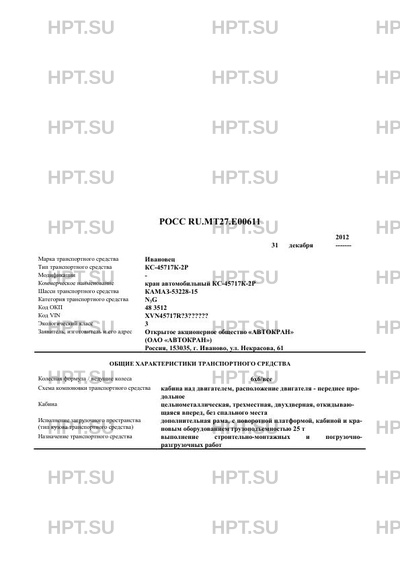 | Коммерческое наименование | кран автомобильный КС-45717К-2Р |