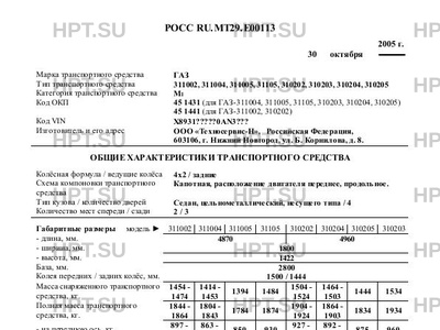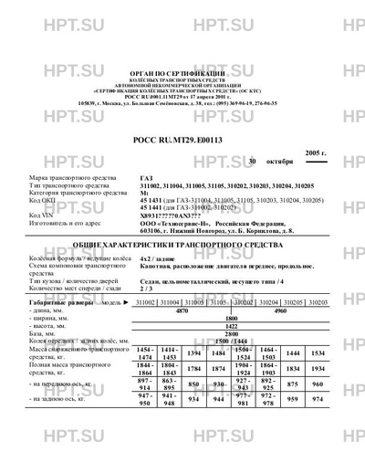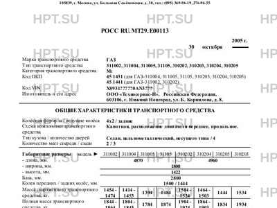 | Оборудование ТС | Двухщёточный стеклоочиститель, омыватель ветрового стекла, зеркала заднего вида, отопитель салона, электрические звуковые сигналы, противоугонное устройство, магнитола; по заказу - детермальное остекление кузова, молдинги, электростеклоподъёмники, климатическая установка "Fregette (ЗАО "Концерн Термаль", г. Нижний Новгород). Автомобиль легковой ГАЗ - 311002, 311004, 311005, 31105, 310202, 310203, 310204,310205 |
