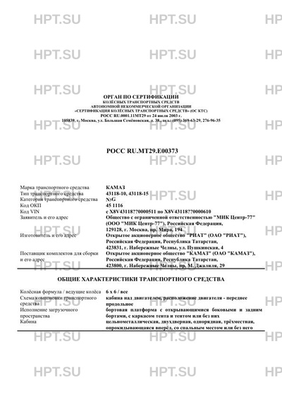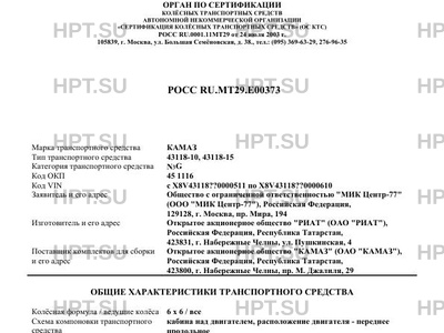 | Предприятие-изготовитель | Открытое акционерное общество "РИАТ" (ОАО "РИАТ"), Российская Федерация, Республика Татарстан, 423831, г. Набережные Челны, ул. Пушкинская, 4; Поставщик комплектов: Открытое акционерное общество "КАМАЗ" (ОАО "КАМАЗ"), Российская Федерация, Республика Татарстан, 423800, г. Набережные Челны, пр. М. Джалиля, 29 |