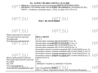 | Заявитель | ОАО «УралПОЖТЕХНИКА», 456313, г. Миасс, Тургоякское шоссе, 20А, Российская Федерация |