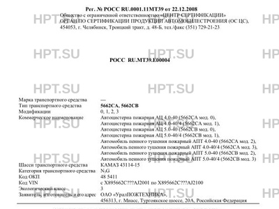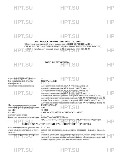 | Коммерческое наименование | Автоцистерна пожарная АЦ 4.0-40 (5662СА мод. 0), Автоцистерна пожарная АЦ 4.0-4… |
