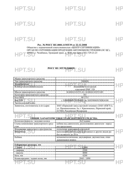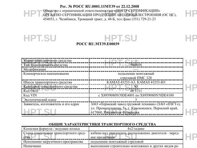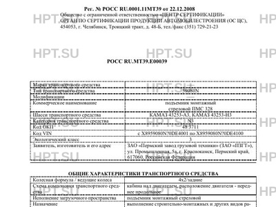 | Базовое ТС / Шасси | КАМАЗ 43253-А3, КАМАЗ 43253-Н3 |