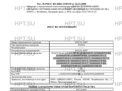 | Заявитель | ООО "ИВЕКО-АМТ", Россия, 456300, Челябинская обл., г. Миасс, Предзаводская пл.1. |