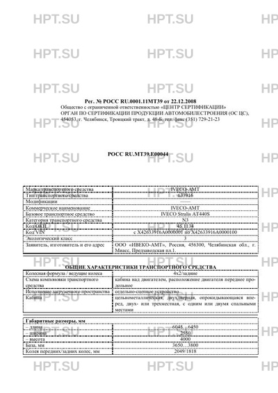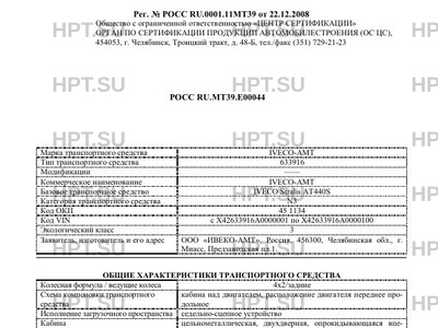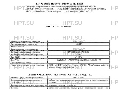 | Заявитель | ООО "ИВЕКО-АМТ", Россия, 456300, Челябинская обл., г. Миасс, Предзаводская пл.1. |